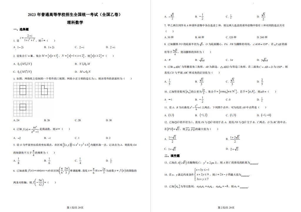 2023年全国乙卷适用:内蒙古、陕西、甘肃、青海、宁夏、新疆、江西、河南8省。